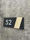 Modern kapı numaramız 3 mm antrasit mat pleksi üzerine folyo baskı ve ahşap ceviz dekor malzeme ile üretişmiş olup iç ve dış mekan koşullarına dayanıklıdır.