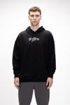 York Si̇yah Kapüşonlu Oversize Erkek Baskılı Sweatshirt