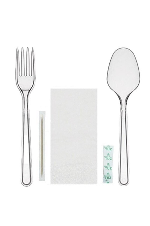 YORULMAZ AMBALAJ Plastik Lüks Kaşık Çatal Peçete Kürdan Tuz 5 Li Set Halinde Poşetlidir.