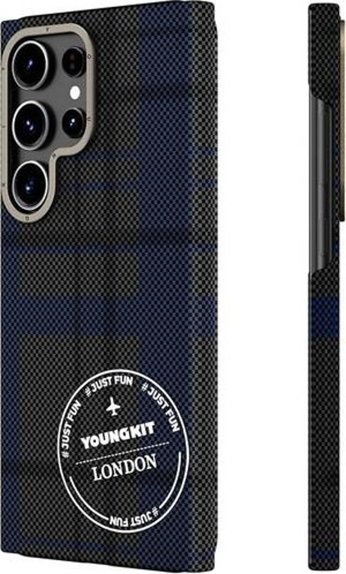 YoungKit Galaxy S24 Ultra Uyumlu Kılıf Ekose Desenli Gezhi Serisi Kapak Mavi