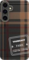 YoungKit Galaxy S24 Uyumlu Kılıf Ekose Desenli Gezhi Serisi Kapak Kahverengi