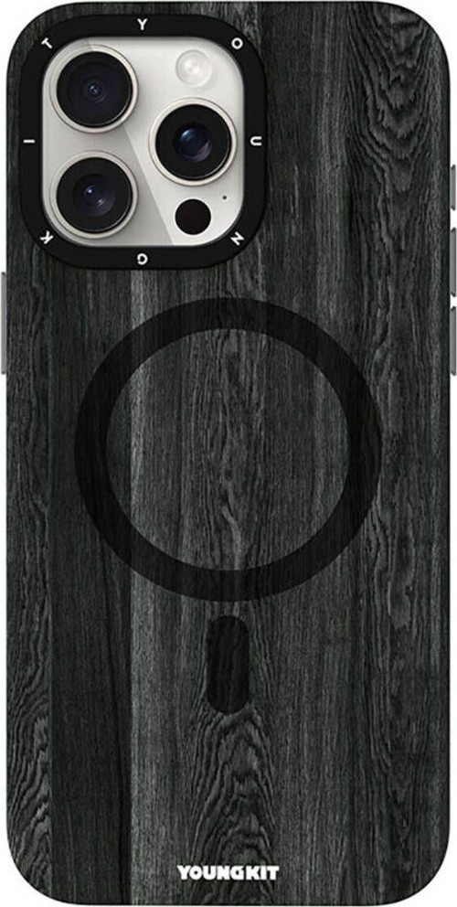 YoungKit İphone 14 Pro Max Uyumlu Kılıf Magsafe Şarj Özellikli Youngkit Ahşap Desenli Wood Forest Seri Siyah