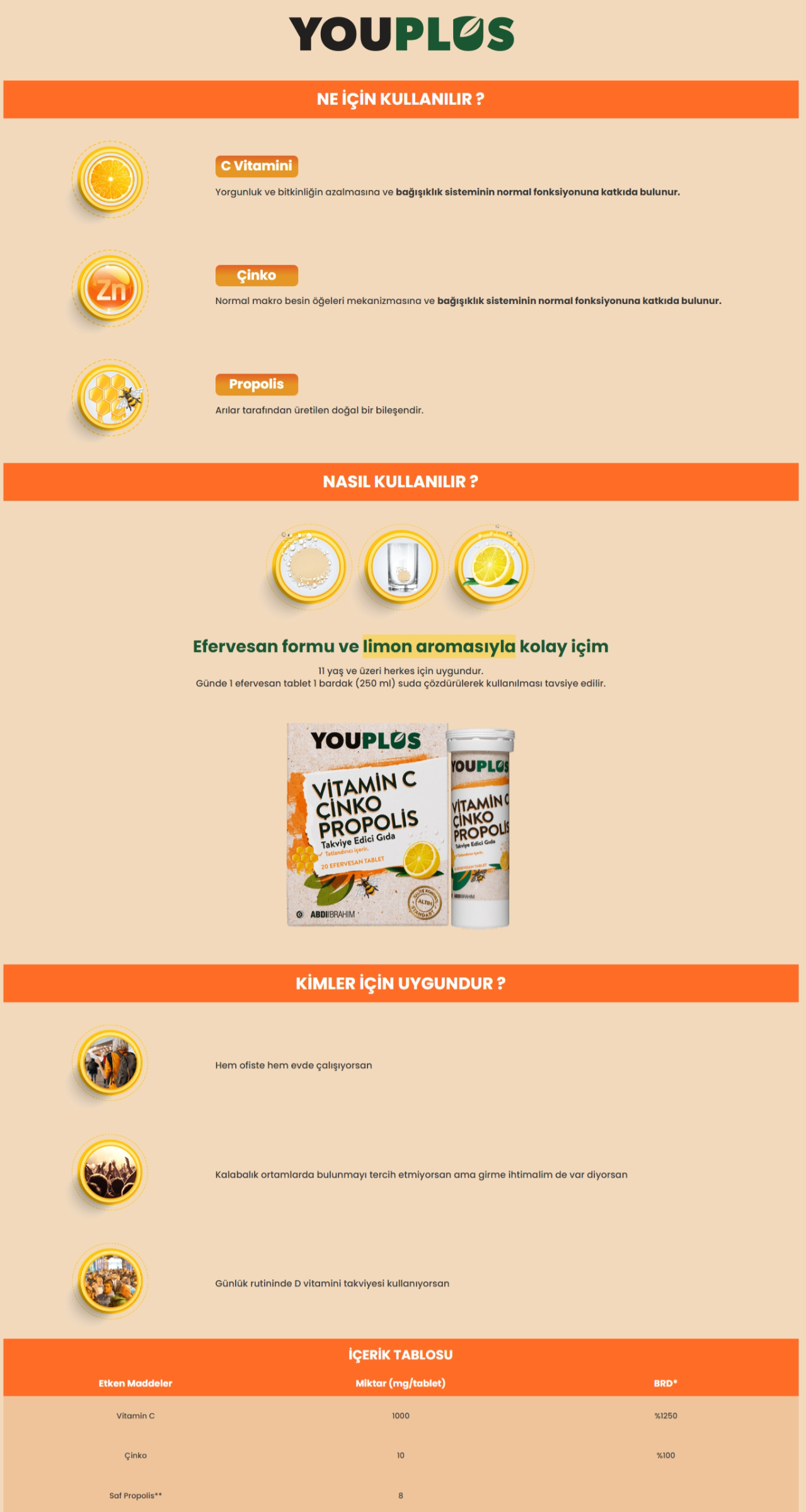 Youplus Vitamin&Çinko&Propolis 20 Efervesan Tb.5 Adet