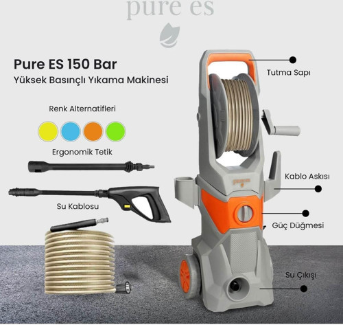 - 1800 Watt gücünde motoru ile yüksek performanslı temizlik sağlar.; - Elektrikli yapısı sayesinde kolay kullanım ve taşınabilirlik sunar.; - 2 yıl garanti süresi ile uzun ömürlü ve güvenilir bir kullanım vaat eder.; - 150 Bar basınç gücü, zorlu kirleri bile kolayca temizlemenize olanak tanır.; - 8-9 metre hortum uzunluğu, geniş alanlarda rahatça çalışabilme imkanı verir.; - Dakikada 800-900 litre yıkama debisi ile hızlı ve etkili temizlik sunar.