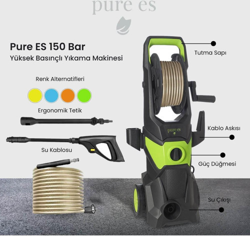 Pure Es Yüksek Basınçlı Yıkama Makinesi Siyah - Yeşil