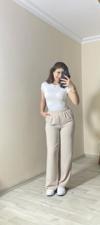 Modern, rahat ve şık bir tarz arayanların tercihi: Saks mavisi bol paça pantolon! Günlük kullanımda maksimum konfor sunan bu pantolon, yumuşak kumaşı ve esnek beli sayesinde hareket özgürlüğü sağlar. Hem ev şıklığında hem de sokak modasında kurtarıcı parçanız olacak.