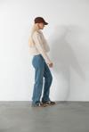 %100 pamuk dokuma kumaştan üretilmiş bu yüksek bel boru paça jean pantolon, zarif ve modern bir görünüm sunar. Özellikle bukle dokuma efektiyle dikkat çeken bu pantolon, sade tasarımına benzersiz bir doku kazandırıyor. Hem günlük kombinlerde hem de şık bir görünümde tercih edebileceğiniz bir parçadır. Sabit bel yapısı ve önden fermuar kapamasıyla klasik jean tasarımına sadık kalınmıştır. Ürünün kesimi bacak boyunca daralıp, boru paçayla sonlanır.