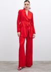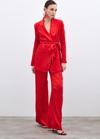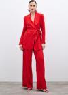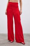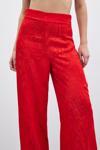Sateen Yüksek Bel Desenli Pantolon - Kırmızı