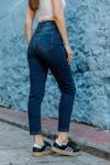 Yüksek bel ve skinny mom jean kesimiyle öne çıkan bu pantolon, %97 pamuk ve %3 elastan karışımı indigo denim (kot) kumaşı ile üretilmiştir. Vücuda esnek bir şekilde oturarak hem rahatlık sağlar hem de bacak boyunu vurgular. Gün boyu konfor sunan yapısı ve modern tarzıyla, her kombininizi tamamlayacak çok yönlü bir parça!