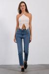 Kadın Beyaz Kot Rengi 5s5-2 Straight Fit Yüksek Bel %100 Koton İç Boy 80cm Denim Jean - Image 1