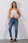 Maule Yüksek Bel, Esnek Skinny Denim Dar Kalıp Mom Jean Kadın Kot Pantolon @Cremona