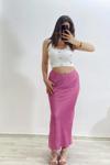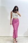 Ürün Açıklaması:Sade ama etkileyici bir görünüm arayanlar için tasarlanan bu fuşya saten etek, parıltılı dokusuyla ışığı zarifçe yansıtır ve her adımda feminen bir duruş kazandırır. Hafifçe oturan düz kesimi ve yüksek bel yapısı, silueti dengeli gösterirken zarif bir incelik hissi yaratır. Diz altına kadar uzanan boyu sayesinde hem şık davetlerde hem de gündelik stilinizde rahatlıkla tercih edilebilir. Akışkan yapısı ve parlak dokusuyla tek başına stil vurgusu yaparken; basic crop bluzlardan saten gömleklere kadar farklı parçalarla kombinlendiğinde stil sahibi ve rafine bir görünüm sağlar.