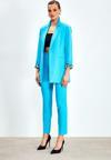 Yüksek bel, düz paça, ön fermuarlı kapama, pens detaylı pantolon.