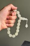 Kedi gözü tesbih, fosforlu malzemesiyle karanlıkta yeşil parlayan özel bir aksesuardır. 17 taneli fıçı kesim, sabit boncuk sayısıyla maskot boyu olarak öne çıkar ve gece kullanımında estetik bir etki yaratır.