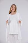- Oyuk yaka detayı ile feminen çizgilere sahip olup zarif bir duruş sergiler.