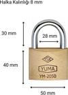 Yuma markasının güvenilirliği ile üretilen bu pirinç asma kilit, dayanıklılığı ve sağlam yapısıyla dikkat çeker.