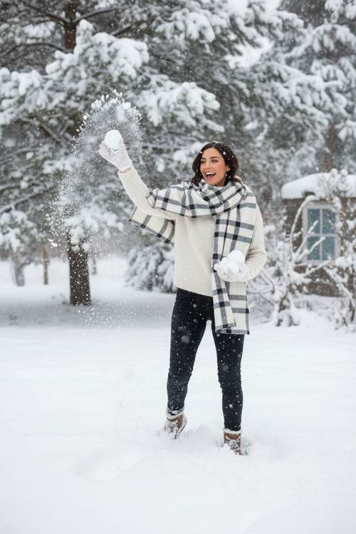 Aquaberry Yumuşak Ekoseli Premium Kışlık Atkı - Beyaz