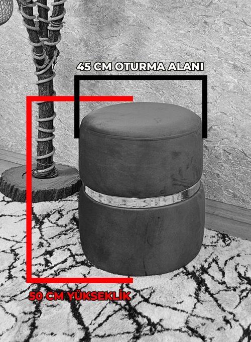 Zafir Yuvarlak Baby Face Kumaş Gold Deri Şeritli Puf Oturak - Puf - Oturak - Bench FÜME Renk Tek Ebat Beden
