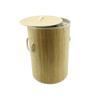 Yuvarlak Bambu Ahşap Kirli Çamaşır Sepeti 35x60cm Seyyar Kapaklı İçi Bezli İp Kulplu