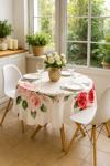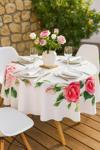 Yuvarlak Gül Desenli Duck Kumaş Masa Örtüsü (Çap: 160 cm – 150x150 cm Masalar İçin Uygun)