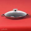 Lava Yuvarlak Izgara Tavası Cam Kapaklı Döküm Demir Yekpare Çift Kulplu Çap(Ø)26cm.