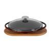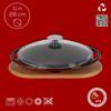Lava Yuvarlak Saç Kavurma Tavası Döküm Demir Yekpare Çift Kulplu Cam Kapaklı Kayın Servis Ahşabı Çap(Ø)28cm.