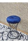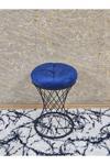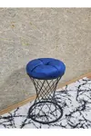 Zafir Yuvarlak Siyah Boyalı Puf Oturak - Bench - Ayak Ucu Oturak - Tabure - Makyaj Oturak Mavi Renk Yuvarlak Boyut/Ebat