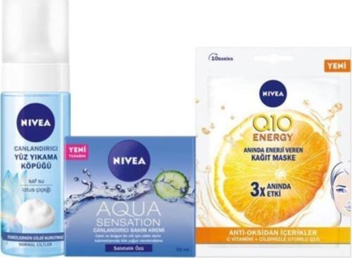 NİVEA YÜZ TEMİZLEME KÖPÜĞÜ 150 ML NORMAL CİLTLER İÇİN+AQUA SENSATION KREM + Q10 KAĞIT MASKE
