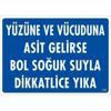 Yüzüne Ve Vücuduna Asit Gelirse Bol Soğuk Suyla Dikkatlice Yıka Uyarı Levhası 25x35 KOD:779