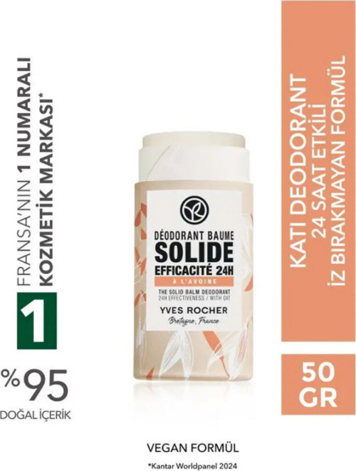 Doğaya saygılı formüle sahip katı stick deodorant, yulaf özü ve shea yağı içeren yapısıyla cildi beslemeye ve rahatlatmaya yardımcı olur.
