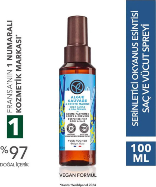 Öne Çıkan Özellikler Saç ve vücut kullanımına uygun Ferah ve temiz okyanus esintisi Hafif, yapışkan olmayan formül Günlük kullanıma uygun Vegan formül İçerik / Nota Okyanus Algleri Koku Profili Deniz esintisi Ferah, temiz ve canlandırıcı Kullanım Talimatı Saçınıza ve vücudunuza sprey başlığı ile eşit şekilde uygulayabilirsiniz.