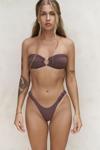 Zahira Yan Büzgü Detaylı Brezilyan Kahve Bikini Altı