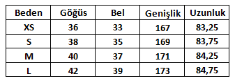 Boy: 1.74 cm Kilo: 52 kg ( Model XS Beden )