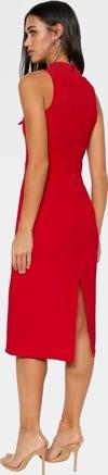 Dokuma kumaşın kaliteli yapısı ve vücudu saran kesimi sayesinde, elbiseniz her zaman mükemmel görünür. Halter yaka detayı, şıklığınıza şıklık katar. Elbisenin midi boyu da, hem resmi hem de günlük kombinlerinizde rahatlıkla kullanılmasına olanak tanır. Bu şık elbise, gardırobunuzun vazgeçilmez parçalarından biri olacak.