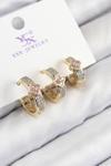 Zarif Kadın için Alaca Pirinç Zirkonlu Üçlü Halka Yonca Küpe