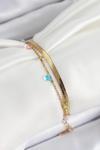 Zarif Kadın için Golden Çelik Alaca Kristal Taşlı Çiftli Bileklik