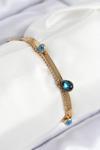 Zarif Kadın için Golden Çelik Mavi Zirkonlu Nazarlıklı İtalyan Zincir Bileklik