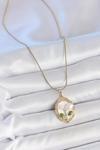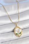 Zarif Kadın için Golden Çelik Zincir Beyaz Mine İnci Çiçek Portre Kolye
