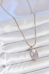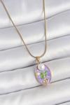 Zarif Kadın için Golden Çelik Zincir Mor Mine Oval İnci Çiçek Portre Kolye