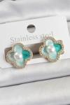 Zarif Kadın için Golden Pirinç Yeşil Mineli İncili Zirkonlu Portre Yonca Küpe