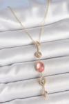 Zarif Kadın için Golden Pirinç Zincir Zirkonlu Pembe Y Kolye