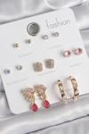 Zarif Kadın için Golden Pirinç Zirkonlu Çiçek İncili Halka 7 Çift Küpe Seti