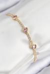 Zarif Kadın için Golden Pirinç Zirkonlu Pembe Kalpli Bileklik