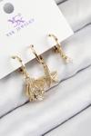 Zarif Kadın için Golden Pirinç Zirkonlu Üçlü İstiridye Ve Yıldız Küpe