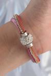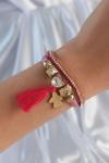 Zarif Kadın için Pembe Zirkonlu Püsküllü Deri Çoklu Bileklik