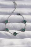 Zarif Kadın için Silver Çelik Baby Boy Çizgili Yeşil Mineli Yonca Bileklik