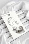 Zarif Kadın için Silver Çelik Halka Figür Zirkonlu 7'li Çift Küpe Set
