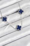 Zarif Kadın için Silver Çelik Lacivert Yonca Zincir Kolye