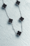 Zarif Kadın için Silver Çelik Siyah Mineli Yonca Kolye