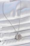 Zarif Kadın için Silver Çelik Zincir Ay Güneş Zirkonlu Kolye